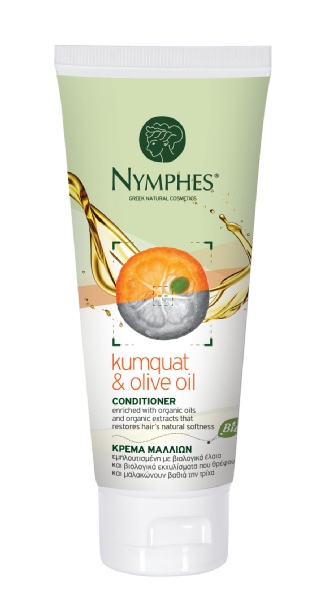 Λάδι μαλλιών με βιολογικό λάδι ελιάς, βιολογικό εκχύλισμα kumquat και βιολογικό λάδι τζοτζόμπα για απαλή περιποίηση και ενυδάτωση των μαλλιών.